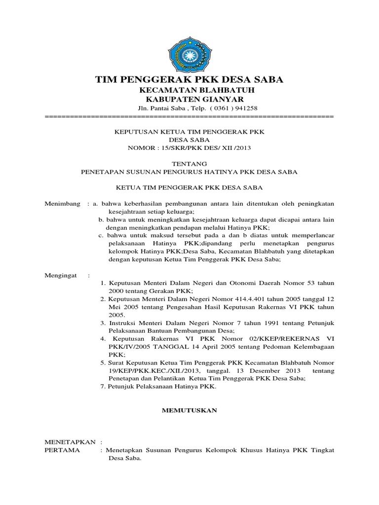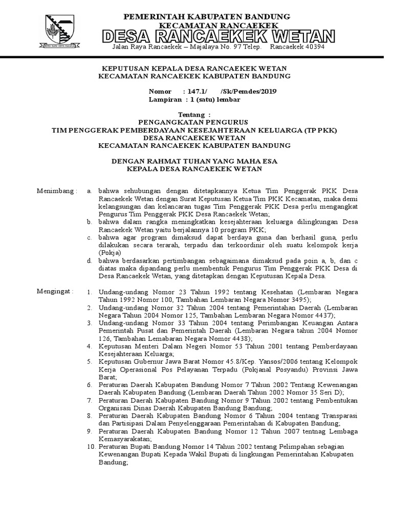 Contoh Sk Pkk Desa 2019 Pdf : Contoh Sk Pkk Pdf : Contoh sk perangkat desa rt dusun mail chaozkhaky.. 41 nomor 267 kode pos. Detail contoh sk lomba hatinya pkk pdf dapat kamu. Contoh surat keputusan sk kepala desa untuk tim penggerak. Jika iya kebetulan kami punya contoh format nya dalam bentuk doc word dan pdf yang dapat anda download gratis free. M.lampost.co contoh sk camat tentang tim.